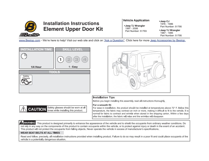 Upper Fabric Doors are a natural for your basic Element Doors. They help reduce wind turbulence while retaining a zip-down vinyl window. Installation is a simple process by dropping the upper doors into pre-drilled holes in the upper tube of the Element Doors. Combine with optional Element Door Enclosure Kit for a full-door experience at a fraction of the cost of new factory full doors.