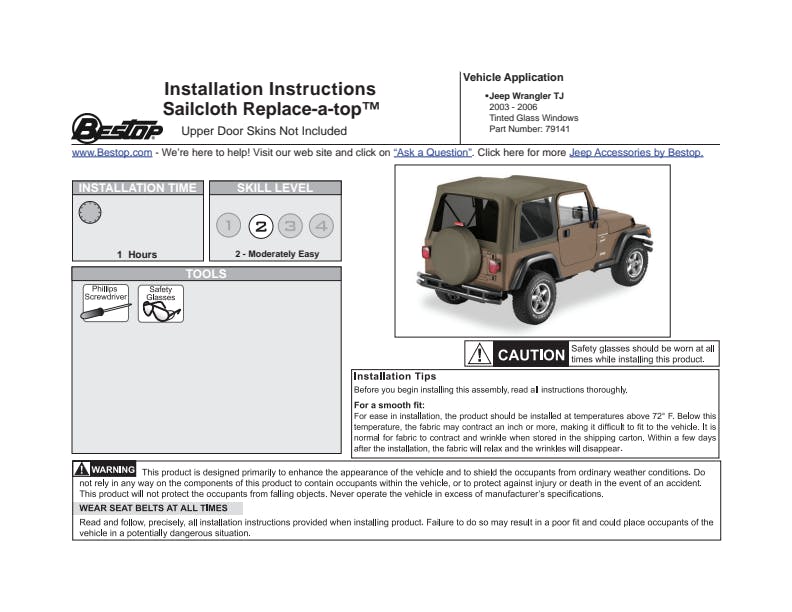 - All Bestop Soft Top Parts Can Be Replaced Individually
