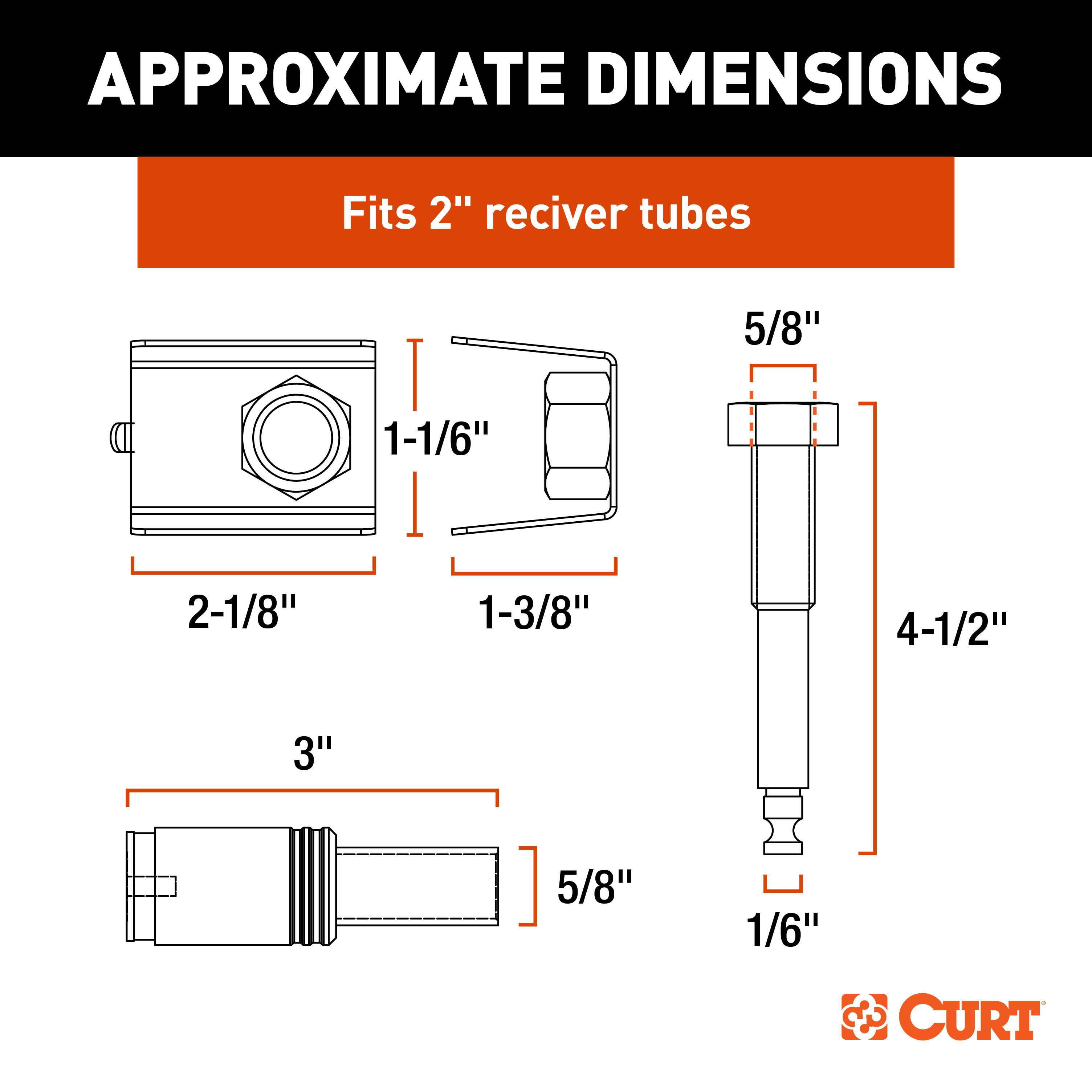 - 5/8” diameter pin fits 2” receiver tubes