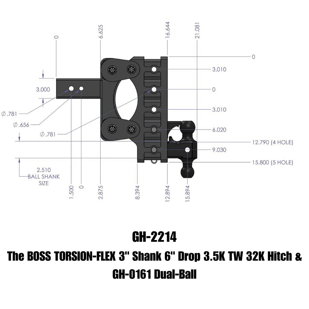 The BOSS TORSION-FLEX 3" Shank 6" Drop 3.5K TW 32K Hitch & GH-0161 Dual-Ball