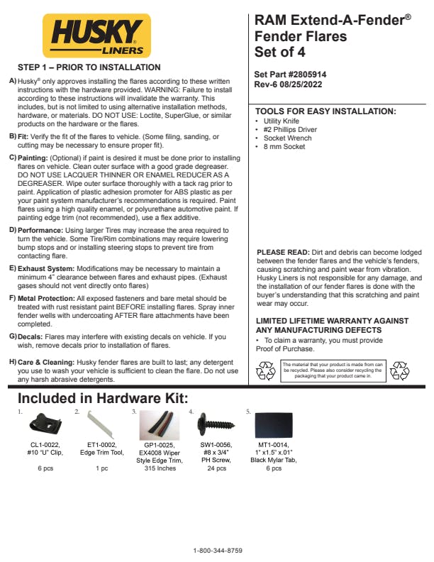 - Extend-A-Fender(R) Flares are covered by Husky Liners Limited Lifetime Warranty, featuring Husky's legendary durability, so they're built to last. Proudly made in the USA with global materials.