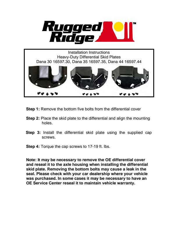 Protect your factory differential cover with these heavy duty skid plates. Designed to fit the contours of your stock differential cover and made of durable 3/16-inch black powdercoated steel; these skid plates will help you slide over obstacles and no get hung up. Incudes replacement mounting hardware and instructions.