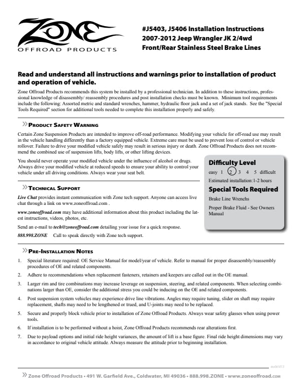 These high quality brake lines are a huge step up from the factory rubber lines in quality, better feel and use a extended length designed for use on lifted applications. They feature multi-layer construction including a Teflon inner core, Kevlar liner, and braided stainless steel to minimize volumetric expansion for a firmer pedal response with less effort. These lines use standard SAE fittings and comply with all Federal D.O.T. requirements. Front set, sold as a pair.