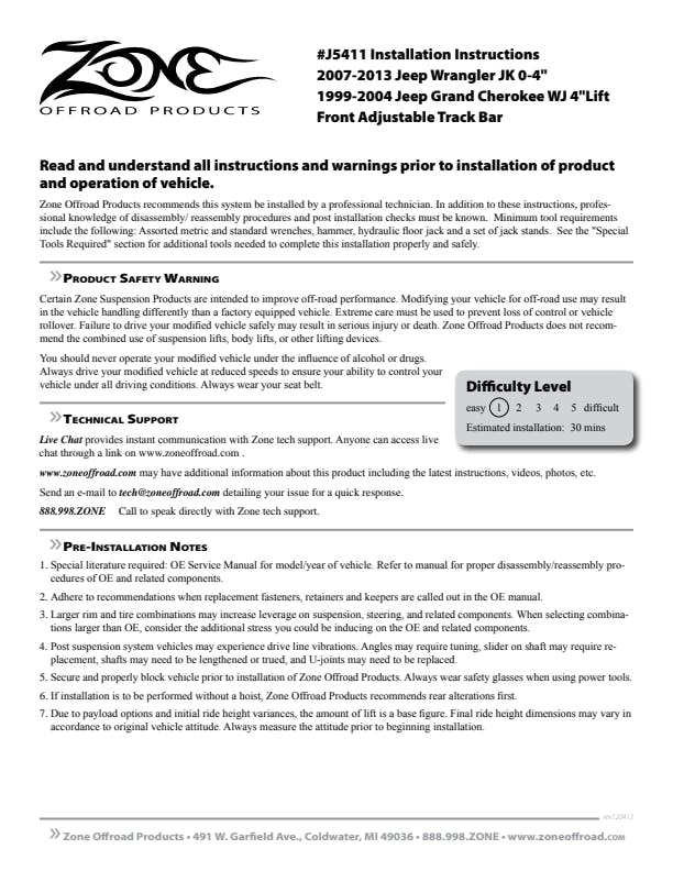 Upgrade your factory front track bar for improved strength, control, and axle positioning with this heavy duty adjustable replacement track bar. Designed for easy installation and fine adjustment, this track bar allows you to recent the front axle with a wide range of lift heights. The bar itself is manufactured from 1.25” OD solid stock, formed for proper fitment and optimal clearance. At either end a durometer specific urethane bushings are used to better isolate road noise and vibrations.